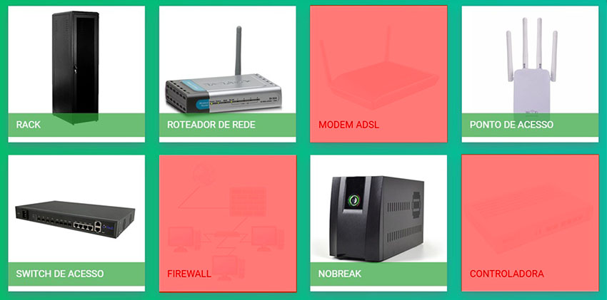 Atendemos nas fases de EQUIPAMENTOS e CONECTIVIDADE, veja abaixo a lista de equipamentos que fornecemos: